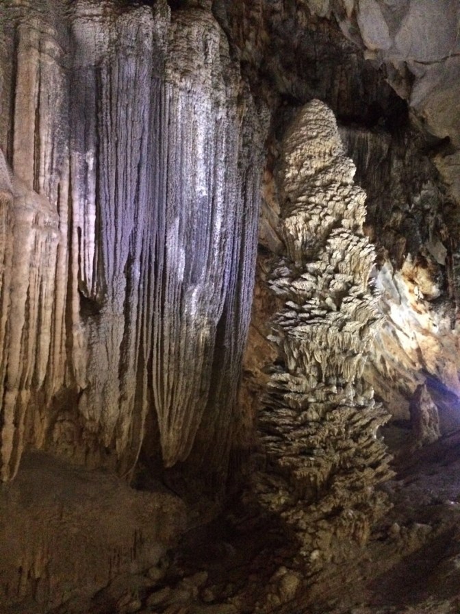 The day we were meant to leave for Dong Hoi the sky decided to bucket down rain, and as a Thanksgiving treat we allowed ourselves to take the train rather than fight the elements. We arrived fresh, and celebrated Thanksgiving with calls to our families before going out for our own makeshift dinner of pizza and white russians. The next day we made the easy journey to Phuong Nha- Ke Bang National Park, where I first saw/ fell in love with karsts, big limestone fins covered in greenery, towering over the rice paddies. Winding between the karsts, we made the most out of our limited time by visiting both the Paradise and Phuong Nha caves. The day was spent skirting around massive stalagmites and straining our necks while gazing up in wonder, enjoying nature reminding us just how small we really are.