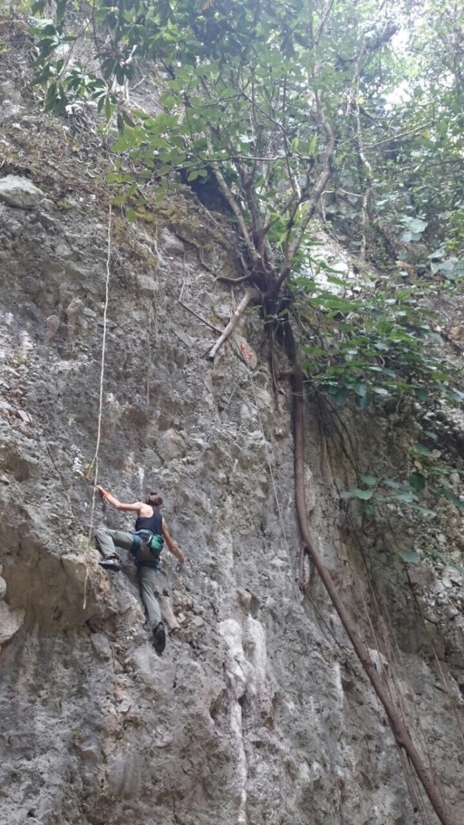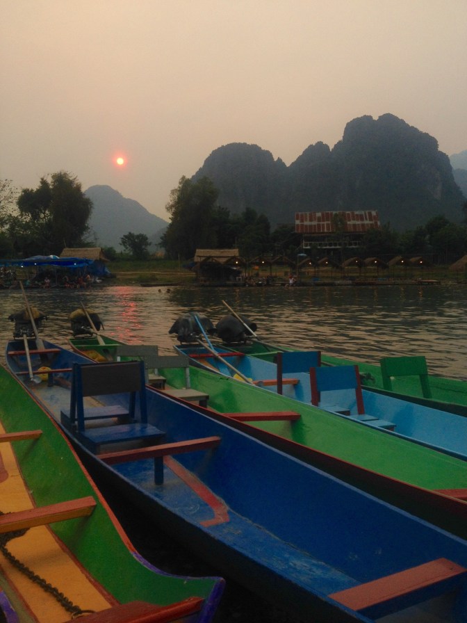 We concluded almost instantaneously that Vang Vieng was a garbage town, although the sunset on the river bank with colorful wooden boats zipping past was still lovely. After an uninspiring day trip out to the Blue Lagoon 3, I opted to take a yoga class amidst the rice paddies, rather than line up for the drunken tubing that Vang Vieng is (in)famous for. My last day was spent climbing with Adam’s School, easily my highlight of the trip. After a tuk tuk ride through the countryside and a long boat across the river, we arrived in a shady canyon. My climbing partner for the day happened to be from the Bay Area, and we shared the space with a couple from Germany, a pair of first time climbers from Korea, and two women working at an NGO in Vientiane, from Denmark and New Zealand. I had a blast playing around on limestone again, and after a fun morning we arrived back into town sweaty and starving, sitting down together for the best meal I ate in Laos: spicy papaya salad with cherry tomatoes and topped with salty peanuts, platters of sticky rice to ball up and dip in the salad dressing, crispy spring rolls, vegetarian green curry and pork larb, all washed down with coconut shakes and plenty of Beer Lao’s.